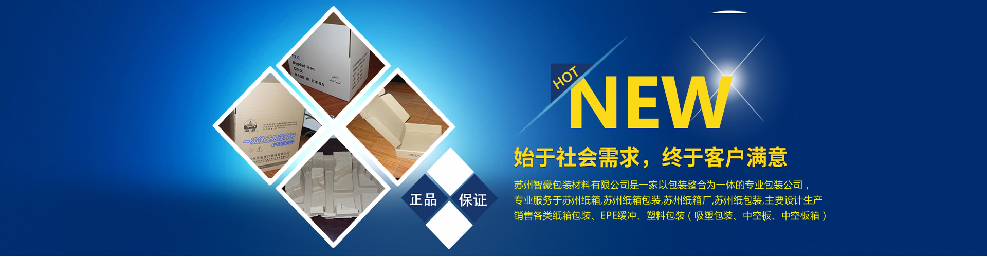 蘇州智豪包裝材料有限公司是一家以包裝整合為一體的專業包裝公司,專業服務于蘇州紙箱,蘇州紙箱包裝,蘇州紙箱廠,蘇州紙包裝,主要設計生產銷售各類紙箱包裝、EPE緩沖、塑料包裝(吸塑包裝、中空板、中空板箱),公司位于蘇州吳中區胥口鎮,環境優美,交通便捷,公司擁有生產廠房5000平方米,公司從根本上確保了 包裝產品的質量,贏得了廣大客戶的一致好評。我公司擁有較先進的紙箱加工設備,專業的設計團隊,因此,我們擁有了一批穩定客戶。  24小時咨詢熱線:0512-66937725
